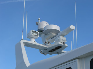 Another thing that impressed me was the arch and sub mast. Check out that spotlight. I forget the candle power but I am told that it will turn night into day. The strong spotlight, coupled with the FLIR system aboard and the owner should be able to pick his way through pretty much anything.