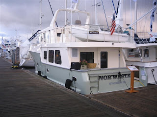 Jan and I took Nor’wester down to Seattle a couple of weeks ago in preparation for the show. The weather was clear, cold and quite windy but the winds were from the North so the trip was smooth and uneventful. On the way down, while sitting in the sun filled, toasty warm pilothouse we chuckled as we remembered why we now love trawlers. We reminisced about the decision to move to trawlers that was made on our trip back from Princess Louisa back in 2001. I still remember how cold and miserable we were.