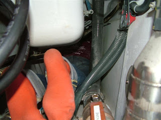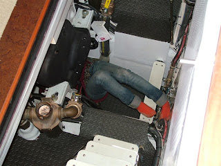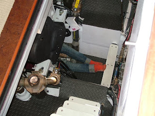 Before we had left Anacortes, we had tested the BAT drive get home system and found that while it worked great, we were only able to get 2.5 knots out of it; hardly enough to make much difference if we had an engine failure in any sea state other than flat calm. It was determined that the hydraulic motor that was installed required too much hydraulic oil flow for what the pump on the genset was able to produce so the pressures would drop and the speed would then suffer. We had a motor air freighted in and found Viking Marine to install it. The motor is located under the main shaft at the aft part of the engine room. Numerous hydraulic hoses, valves, and a corner of the genset complicate things further. Joe and Kane both looked at where the motor had to go and soon decided that reinforcements had to be brought in. Kane called his daughter, Sydney, who is very petite and she was soon crawling under the engine and all the way to the back of the bilge.