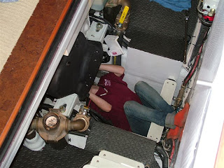 Jan arrived on Tuesday and we set about shopping, stowing and generally preparing for the beginning of FUBAR. I visited the West Marine store about twice a day on average and I think if you check their stock prices, they must have gone up last week. I am sure that now that we have left, there will be massive layoffs at West Marine. There were so many things that I never realized that we needed. A dinghy anchor, dinghy anchor rode, new CO2 cartridges for the PFDs, wash buckets, scrub brushes, letters to mark the dinghy: T/T Nor’wester and then there were the numbers to place the documentation numbers in the engine room. We had just received the new official number and I had not yet marked the boat. The Coast Guard wants it to be in 3” numbers and in a manner that it would be very apparent if the numbers were altered or removed. I thought that the best way to do this would be to use the vinyl numbers and then to put a single layer of glass and resin over it so that it was still readable, but protected against altering. Well, can you believe that at West Marine I was able to get all of the letters and numbers I needed except for the number “5”. I could not find a number 5 anywhere that I went. West Marine was back ordered on that number and the other marine stores I visited didn’t have one either. I did find one in white color but that doesn’t do me any good as the rest of the numbers are black and it is going to be placed on a white stringer and wouldn’t be seen. Well, I finally settled for getting a couple of other letters that could be cut and a 5 could be made from them. I bought a white number 5 to use as a pattern. I decided to just put the numbers on the boat and let our fiberglass experts cover them when the boat returns as I think they would do a much neater job than I could do. I hope the Coast Guard will understand.
