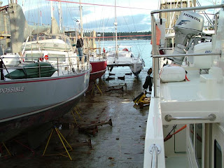 Once we got to Nanaimo, we took a cab to out hotel, the Coast Bastion, which is right near where the Dockwise ship would offload. We met up with Chuck and Margaret of Mairead, the Grand Banks 46 that did the FUBAR with us and decided to do dinner later. At dinner, we were joined by Mik and Barb of Navigator, a beautiful Krogen 48 and John and Margot of Caretta, a Tartan 41 sailboat who were also there to offload their boats. We had a great time at a great little restaurant called the “Modern Cafe”. (highly recommended if you get to Nanaim0)