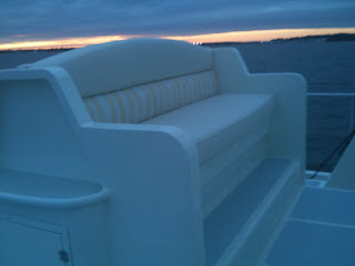 The owner had not originally opted for our optional boat deck seating area but once he got the boat back home to Annapolis, he realized how much he would use the upper deck while aboard and almost immediately began thinking about adding a structure there.