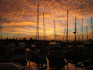 On Sunday morning, I snapped this picture taken from up on the flybridge. The redness of the sky is due to the fires, no doubt.It was sure pretty, but a huge price to pay for beautiful sunrises. I would rather have gray skies I think and leave the pretty sunrises for Hawaii.