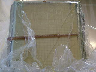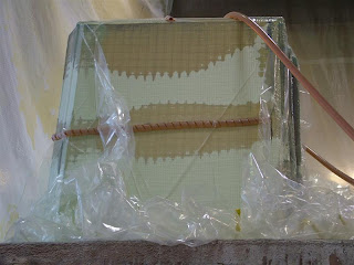 I was a bit late getting over for the infusion. As you can see above, the bag is in place and the lines are filled with resin. They began a couple of hours ago and here it is nearly complete