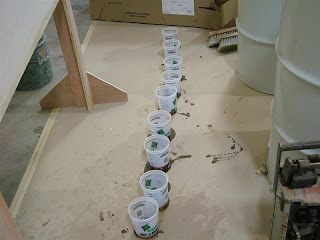 No, this is not a setup at the Buena Vista for Irish Coffee…….these are the resin samples. When a new batch of resin is mixed, a sample is taken to insure that the mix was correct and it “kicks” properly. All of them did. I was afraid to ask what they do if one or more don’t.